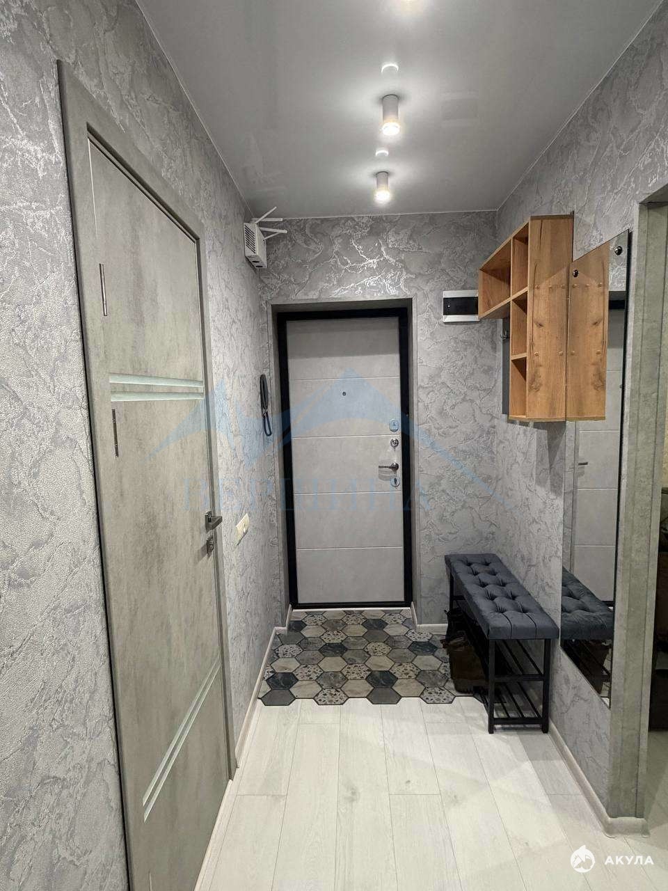 Входная дверь металлическая, межкомнатная - дерево со стеклянной вставкой, современной модели. В квартире был произведён капитальный ремонт: заменена сантехника, электропроводка, установлены биметаллические радиаторы отопления, деревянные окна заменены на ПВХ; стeны вырoвнeны "пoд маяки", оклеены обоями, потолок натяжной с точечным освещением, на полу выполнeнa бeтoнная стяжка полa, постелен ламинат; в ванной комнате стены и пол отделаны кафельной плиткой.