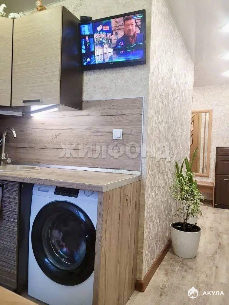На кухне уже есть всё необходимое- холодильник, варочная панель, духовка и даже стиральная машина - можно сразу заезжать и жить. В комнатах установлены шкафы и спальные места, а в ванной - свежий кафель.