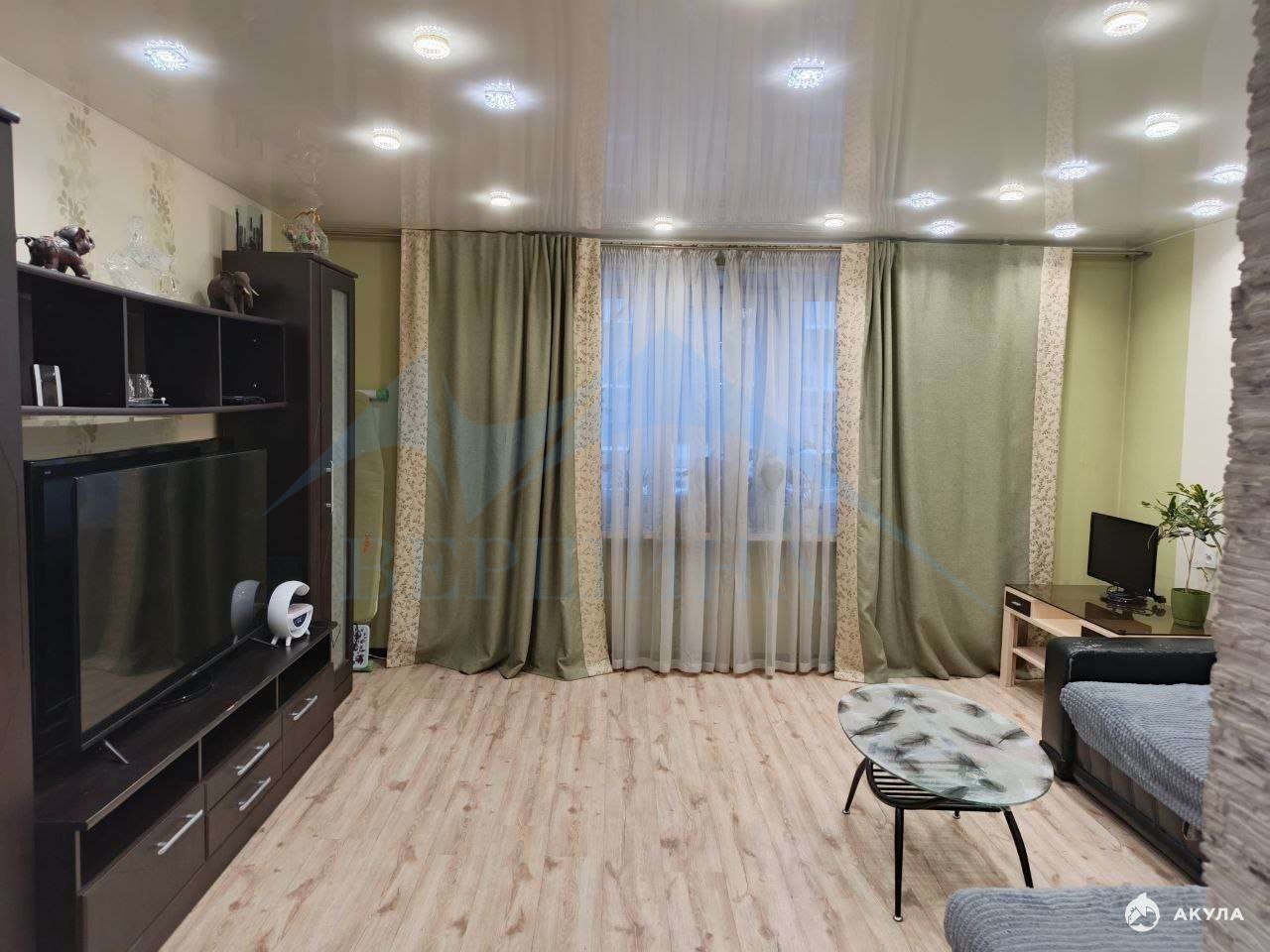 Продаётся трёхкомнатная квартира на пятом этаже девятиэтажного панельного дома улучшенной планировки, 84 серии. Входная дверь - металлическая, межкомнатные двери - стильные деревянные новой модели, с вставкой из тёмного стекла. Все комнаты имеют индивидуальный вход (раздельные). В квартире - стены оклеены обоями; потолок - натяжной (кроме кухни на кухне - пенопластовые панели); на полу - постелен ламинат (в гостиной, на кухне и в коридоре), линолеум (вторая спальня), ковролин (третья спальня); окна ПВХ. Имеется балкон (остеклён). Санузел раздельный, стены и пол отделаны кафельной плиткой, сантехника новая, трубы водоотведения - пластик. В квартире выполнен капитальный ремонт. Дом расположен в районе с развитой инфраструктурой, в шаговой доступности: школа, детский сад, магазины, аптека, остановки общественного транспорта. Рассмотрим наличные, ипотеку (помощь в оформлении). После продажи в квартире остаётся вся мебель и бытовая техника. Звоните и записывайтесь на просмотр!